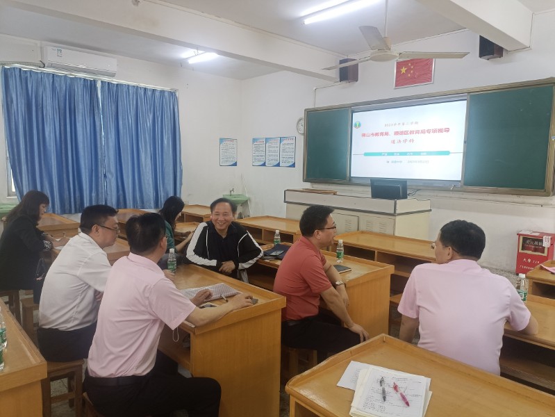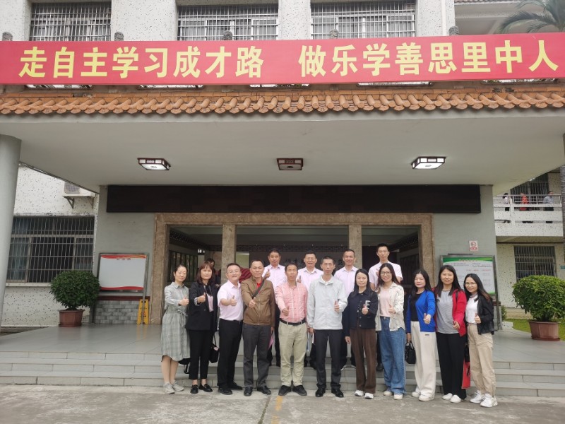 为做好佛山市全口径全方位融入式帮扶云浮市基础教育高质量发展工作,充分发挥学校品牌示范、引领和辐射带动作用,增强两校教研能力,推动两校共研共建,2023年3月22日,新兴县实验中学副校长张玉发带领教务处主任、德育处主任、初三备课组长、心理老师和容里中学支教老师何涛一行12人莅临顺德区容里中学开展两校教育教研交流活动。