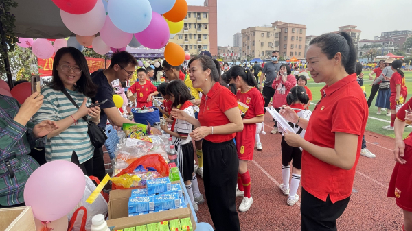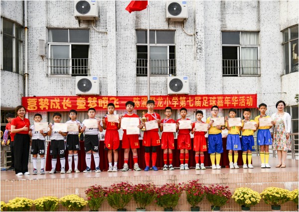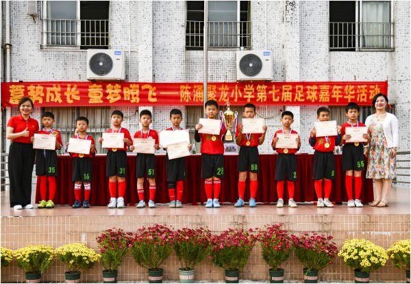 我校一直以足球作为学校特色,把足球运动的开展作为学校素质教育的又一个突破口,并取得了不错的成绩,在刚刚结束的2023年龙江镇校园足球联赛中,我校足球队获得了男子丁组和女子丁组冠军以及男子丙组季军,邹校长为获奖的学生颁奖。我校是全国青少年校园足球特色学校,短短几年,学校足球经历了从无到有、从初步探索到强势发展的变化历程。如今,校园足球已成为聚龙学子深爱的体育特色项目。