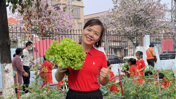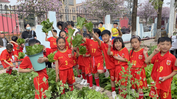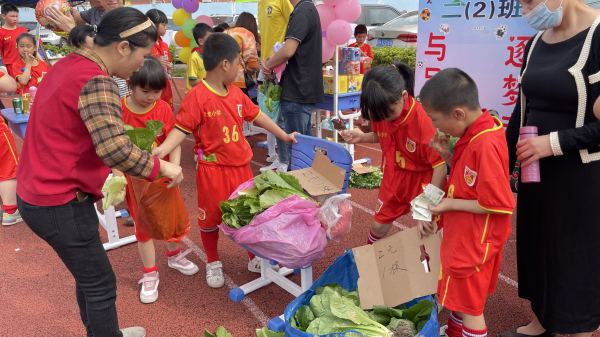 学生和家长到劳动基地收获成果