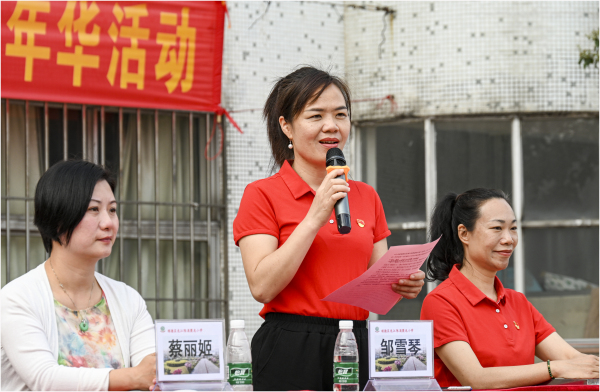 邹雪琴校长发表讲话并宣布陈涌聚龙小学第七届足球嘉年华活动正式开幕