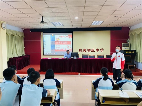 为充分发挥团组织教育青少年的功能,进一步加大对团员青年、入团积极分子的培养教育力度,实现以“党建带团建”的目标,4月11日,板芙初级中学在弘毅楼一楼阶梯室举行“党支部书记上团课”活动。该校党支部书记、校长吴勇明以《永远跟党走,建功新时代》为题讲授团课。活动由该校团委书记梁博煜老师主持,各班团员代表、入团积极分子共70多位同学参加。