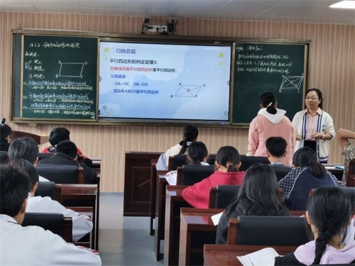 翌日,开展现场送课交流活动。板芙初级中学的3名骨干教师分别为汤溪学校的学子送上了3节展示课。英语骨干教师钟媚展示的是《Why do you like pandas?》。她通过创设动物园情景,将零散的教学活动统一在“设计动物园参观路线并说明原因”的大任务中,借助生动形象的图片、契合主题的动画和相关动物的声音,帮助学生学习动物名词和形容词,突破难词发音、名词单复和形容词感情色彩。整个教学过程,师生互动,很好地完成了教学目标。数学科组长向光荣老师带来一节八年级《平行四边形的判定》,她带领同学们在具体图形中落实判定的应用以及数学几何语言的表达,深入浅出,通过学生自主探究活动,充分地把课堂交给了学生,发挥了学生的主体作用。