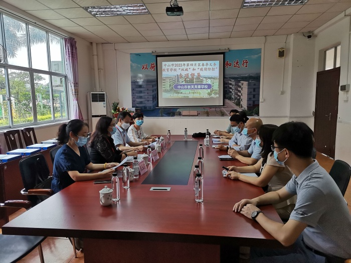 为加强义务教育阶段学校疫情防控、“六项管理”实地督导工作,促进学校落实疫情防控工作、减负提质、和谐发展,2022年5月24日下午,中山市督学检查组刘依婷、徐铭侃、杨加权等一行四人莅临芙蓉学校开展疫情防控、“六项”管理工作督导检查。