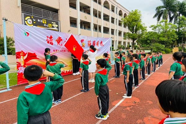 为迎接中山市第八次少代会的召开,增强少先队员的光荣感,充分发挥少先队组织在立德树人中的先锋作用。10月12日上午升旗仪式,板芙镇板芙小学举行了“请党放心,强国有我”--少先队微仪式暨2021学年“红领巾奖章”争章启动仪式。