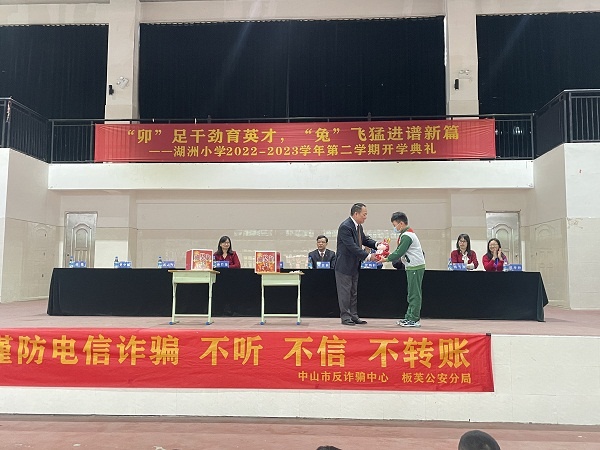 新年伊始,湖洲小学用心为同学们准备了新年礼物,行政团队上台抽取11名同学派送新年礼物,掀起全场气氛高潮,现场掌声如潮、喜气洋洋。