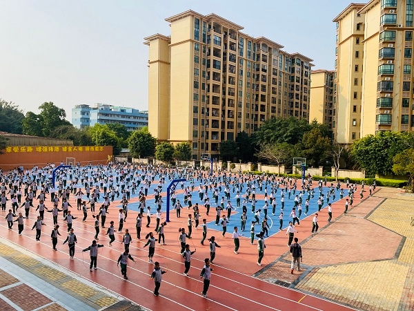 东山镇中心小学团队在湖小郑少君校长带领下,兴致勃勃地参观了校园环境,介绍学校文化特色,感受湖小环境之美、文化之妙、达人之风采。在湖小学校操场观摩湖小阳光体育大课间,各班开展滚铁环、跳皮筋等生动有趣的特色活动,学生欢笑声洒遍整个校园,成为一道亮丽的风景线。