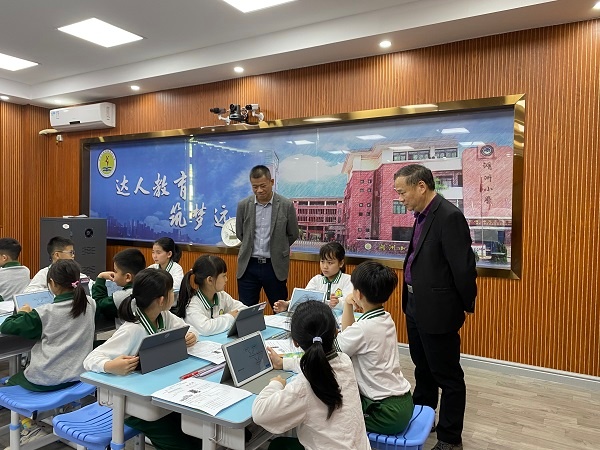 东山镇中心小学校长余俊祥分享该校工作开展情况及此次交流帮扶活动感受。在交流中,余校长高度赞赏湖洲小学的办学理念,并深情表达了美好愿景,希望两所学校能稳定开展帮扶交流活动,一同畅想美好未来。