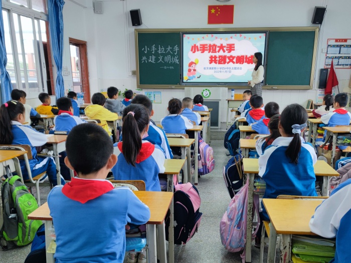 11月7日早上,新联小学通过主题班会活动,布置学校“创文”工作。德育处副主任刘桂英在“线上升旗仪式”中作动员讲话,阐述了创建文明城市的重要意义,结合学校实际作具体工作安排,号召全校师生为创建“全国文明城市”做出应有贡献。各班开展了以 “小手拉大手 共创文明城”为主题的班会活动。班会课中,学生完成一次《你是一个文明的人吗》的自我测试,就“如何创建文明城市”开展讨论,为中山创建全国文明城市献计献策。学校呼吁全体同学做到“我知晓、我参与、我奉献”,小手拉大手,带动家长为中山市创建全国文明城市做一份贡献。