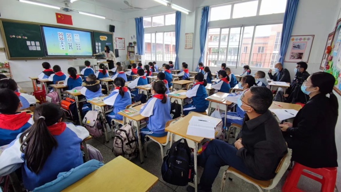 此次评估分为“学校自评—现场评估—评估反馈”三个环节。在自评环节,评估组成员听取了新联小学校长吴肇葵以《凝心聚力谋提质 赓续前行向未来》为主题的自评报告,报告从支部建设、提质增效、综合素养、以文化人等方面全面回顾了2021学年学校的重点工作与取得的成绩。随后,在吴肇葵校长的陪同下,评估组观看了学校体艺特色项目展示,有篮球操表演、萨克斯演奏、合唱、师生油画作品展等。紧接着,评估组通过课堂听课、查看资料、召集教师和学生座谈、实地察看等形式了解学校校园文化建设等相关情况。