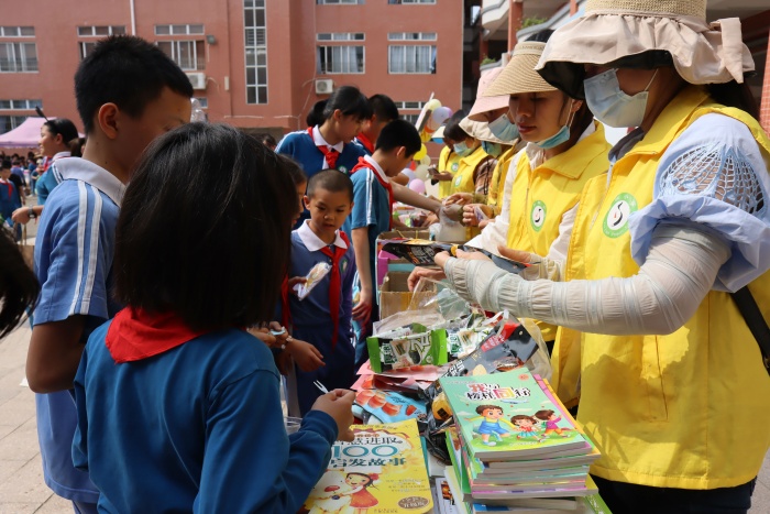 活动现场,义卖品种类丰富,有书籍、文具、书画作品和玩具等,琳琅满目的义卖品吸引了众多孩子们的目光。为了招揽“顾客”,每个班级都使出“浑身解数”,设计了独具特色的招牌和摊位。校园里人声鼎沸,各式叫卖声此起彼伏。有的充当了“促销员”,有模有样,卖力宣传;有的充当“服务员”,收钱找钱,忙得不亦乐乎;还有的化身“秩序员”,整理摊位,组织购买……清脆的叫卖声,为的是卖出自己心爱的物品,为需要帮助的人筹集善款,奉献自己的爱心。