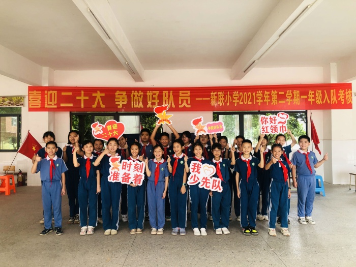 为深入贯彻落实《中共中央关于全面加强新时代少先队工作的意见》和《关于构建阶梯式成长激励体系增强少先队员光荣感的指导意见》,切实增强少先队员的光荣感和组织归属感,5月26日下午,新联小学少工委开展了“喜迎二十大 争做好少年”一年级入队考核闯关争章活动。