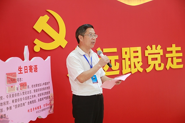 随后,张政书记为过生日的党员老师贺词,并鼓励他们时刻以党员的身份严于律己,勇担重任,争做模范,全体党员共同为即将到来的“七·一”党的生日献唱一首《唱支山歌给党听》来表达心声。