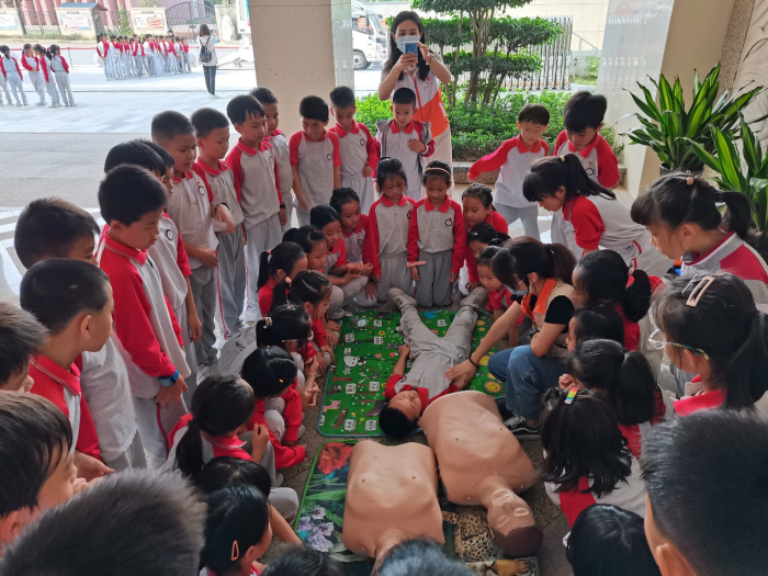心肺复苏体验区中,孩子们一个个凑着小脑袋,认真聆听老师给他们讲解的内容,积极举手回答老师提出的问题,主动配合做老师的小助手,孩子们在活动中明白了心肺复苏抢救的重要性,对生命的敬畏感油然而生。