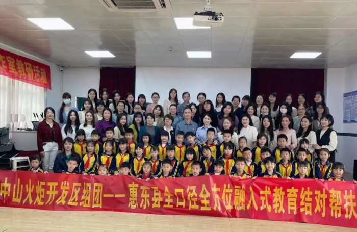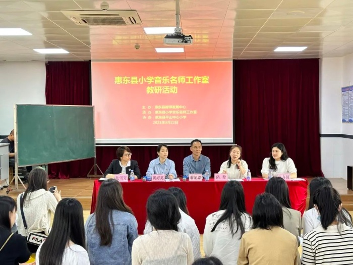 为更好落实《广东省教育厅关于做好全口径全方位融入式帮扶粤东粤西粤北地区基础教育高质量发展工作的通知》精神,充分发挥支教教师的示范引领作用,为教师们提供一个观摩、学习的平台,架起城乡联系和沟通的桥梁,促进惠东县各学校的音乐教学质量和教师的业务水平的提高,3月31日上午,由惠东县教师发展中心主办、惠东县小学名师工作室承办、惠东县平山中心小学协办的小学音乐名师工作室音乐教研公开课活动如期开展,中山火炬开发区博凯小学派往平山中心小学支教的陈黎老师进行示范教学,并面向全县小学直播展示,现场46位小学音乐教师及远在中山的火炬组团全体小学音乐教师通过线下与线上观摩的方式参与了本次活动。