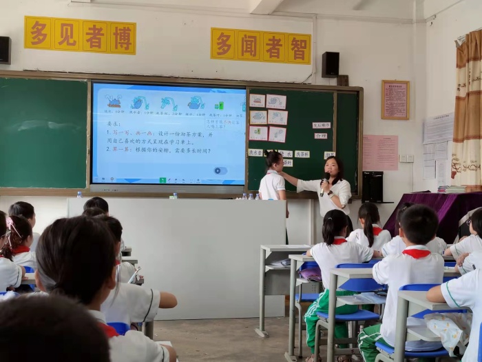 梁满枝老师展示的是四年级数学上册《合理安排时间》,梁老师从学生生活实际出发,以微视频引入并提出问题,围绕着学习单让学生独立自主地设计沏茶方案、展示方案,老师以轻松、幽默的语言引导学生在不断的探索、比较、思考中总结出最优的方案,从而很好地完成教学目标,突破重难点。充分体现了“老师为主导,学生为主体”的教学模式,尊重学生的个性发展,得到在场老师的高度肯定和一致好评!