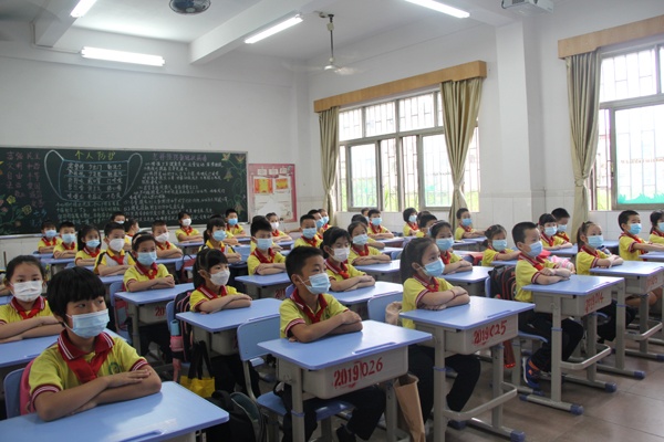 开学第一课上,特殊的升旗仪式后,吴秀容校长为低年级的同学献上了一份神秘小礼品,寄语了对学生的浓浓爱意。班主任组织同学们观看《英雄归来,天使开讲》,引导他们通过疫情,学会感恩他人,敬畏生命。随后,班主任们开展各种活动进行心理疏导,同时教会防疫小妙招。健康防疫学习后,各班开展学生返校一日常规要求的学习,在老师的引导下,同学们学会运用正确的七步洗手法、分级分班错峰定位用餐,课间保持安全距离,有序玩耍,执行错时错峰放学......疫情防控意识深深植根于每个同学的心中。