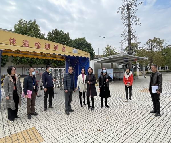 廖诚副书记一行人实地考察了学校的校园环境、文化宣传,检查了学校的疫情防控方案、防疫物资的储备和使用等。同时,廖副书记一行还听取了刘松校长有关学校的党建工作、师德师风建设和疫情防控工作的汇报。