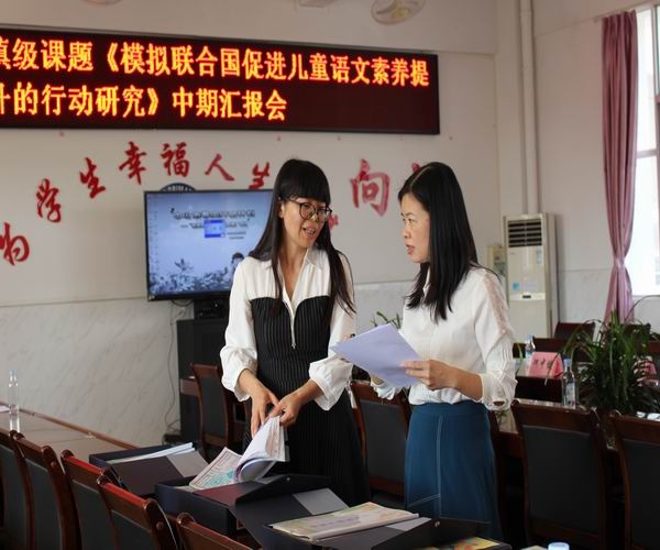接着,镇课题专家组的陈红主任根据推进情况进行了专业而细致的点评。她首先肯定了课题组的成员所进行的富有成效的工作,赞赏《模拟联合国促进儿童语文素养提升的行动研究》选题富有新意,很有研究价值。目前,“模拟联合国”多数是在大学、高中阶段开展研究,鲜少在小学进行。课题组成员能大胆尝试,进行创造性工作。同时,陈主任也指出课题推进当中的不足,指导课题组老师可以收集心得收获、图片、抓拍视频,准备更有价值的资料,勉励老师们再接再厉,把课题做得更加扎实细致。