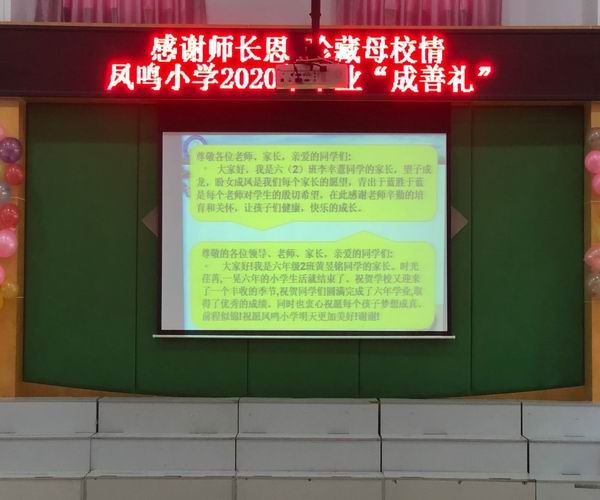 本次典礼分为三个篇章:难忘母校篇、难忘恩师篇和感恩父母篇。一段温馨的视频“青春纪念册”拉开了毕业典礼的帷幕,一起回顾了六年来在凤鸣小学的学习生活。紧接着,刘松校长为全体毕业班同学致辞,愿凤鸣学子有理想,有担当,谨记校训,在新的学习征程里,乘风破浪,直挂云帆。毕业班学生代表梁栩丽同学发言表达出了每一名六年级学生的心声,感谢老师,感谢同学,感谢父母。尽管这次毕业典礼,家长们不能现场参与,但是他们通过视频,真诚地感谢凤鸣小学对孩子们的悉心教育,祝愿孩子们能保持终身学习的信念,学有所成。