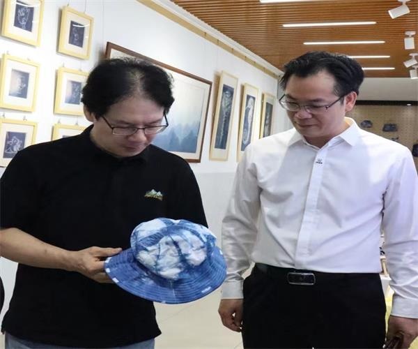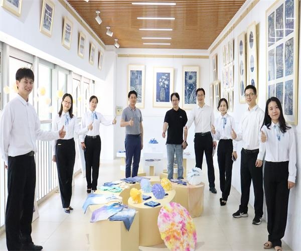 沈文老师一行首先来到非遗民族技艺展示馆,欣赏了孩子们创作的一幅幅精美的扎染创意美术作品。接着课题主持人吴连娟老师向专家们汇报中期研究成果,分别从课题简介、课题研究目标、阶段研究内容、主要研究进展、阶段研究成果和效果、主要创新点、存在的问题、下阶段研究计划等方面进行汇报。专家们认真听取了中期报告,查阅了课题相关资料,肯定了课题组工作扎实、研究方向明确、思路清晰。