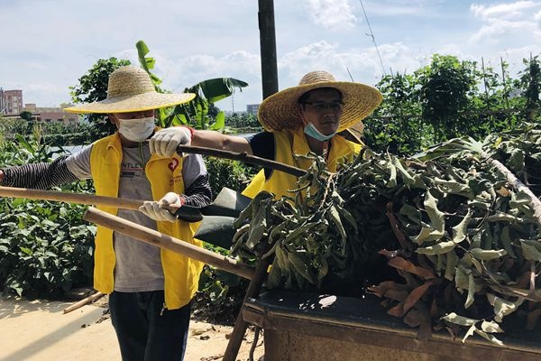 志愿者们头戴草帽,拿上清洁工具,清除路边的杂草、树枝、垃圾和杂物,大家相互积极配合、团结合作,所到之处,带走一车垃圾,留下一片整洁。虽然烈日炎炎,但是志愿者依旧热情高涨。
