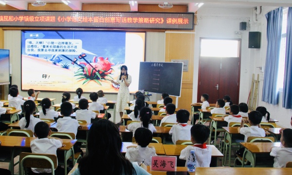 活动的第二部分是教研评课环节。首先是两位老师对自己执教的这节课进行说课,接下来老师们积极评课议课,从教学内容、教学方法等方面各抒己见,纷纷指出课堂教学的亮点以及有待改善的地方。最后,吴海飞老师对两位老师的教学给予充分的肯定和赞赏,并以这两节课为例进行了细致的阐述,从《小学语文绘本留白创意写话教学策略研究》和《小学想象类作文运用交际语境的教学策略研究》这两个课题的概念界定、教学策略以及研究思路等方面提出了建议,为老师们提供了切实可行的帮助。