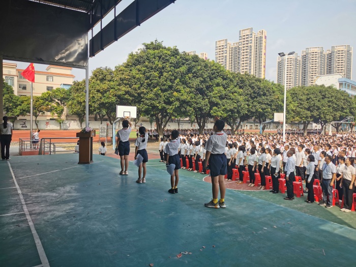 9月10日早上,在庄严的升旗仪式过后,伴随着热烈的掌声,蓝桂珊副校长首先向辛勤工作的教师表达谢意,并送上了节日的问候。接着由少先队员代表为教师们献上他们精心准备的诗歌朗诵《师恩颂》,表达了孩子们对教师们的感恩之情。紧接着,由新教师代表朗诵《神圣的三尺讲台》,让全体师生感受到了初出茅庐的他们,立志坚定守护一方净土,对教学事业无怨无悔付出的决心。随后,王玉婷老师的一支独舞把活动推向高潮,优美的舞姿深深地吸引了大家的目光。活动接近尾声,少先队员代表们为全体教师送上学校为教师们准备的小蛋糕,以庆祝第37个教师节。最后,陈名胜主任带领全体教师面向国旗庄严宣誓:忠于人民教育事业,贯彻国家教育方针,履行教师神圣职责,为中华民族之复兴,为人类文明之进步,奋斗终身!