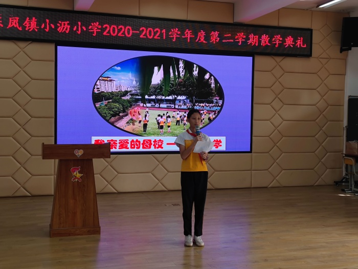 散学典礼由小沥小学陈名胜主任主持,共有四个议程,分别是法制安全教育、交通安全教育、小沥小学黎三妹副校长作学校工作总结以及师生颁奖仪式。首先由小沥小学法制副校长梁凎荣警官为全体师生作了非常详尽的暑假法制安全教育。梁警官从疫情防控、防溺水、用电安全、防诈骗等方面展开教育,重点强调暑假防疫,非必要不离粤不离市,确保安全健康返校。接着由东凤镇交通安全宣讲员张景康警官为师生们作了交通安全教育。张警官从行走安全、乘车安全、骑车安全等方面提醒师生遵守交通法规,注意人身安全。