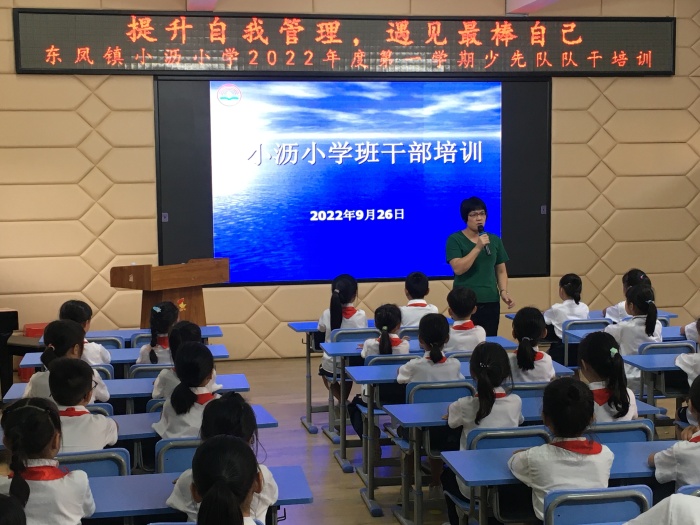 会议伊始,小沥小学大队辅导员梁月仪从少先队队干部应具备的素质、修养、工作方法等方面进行了培训,就队干部在少先队管理中的作用、职责、义务等方面进行了详细的讲解,强调队干部要起好模范带头作用。听取梁老师的分享后,队干部们纷纷发表其今后的工作目标并分享各自过往切实可行的做法。最后,黎三妹副校长对队干部提出了新的要求和希望,强调少先队干部要在学校管理建设中发挥“领”与“导”的作用,履行好自己的职责,用自己的行动带好“头”,不断发挥自己的聪明才智,把工作干得更出色。