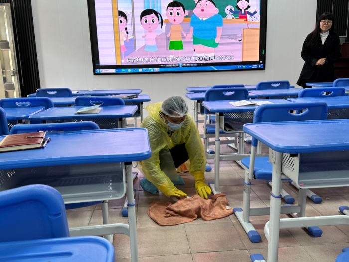为了给孩子一个更安全舒适的环境,演练结束后学校组织全体老师进行了爱国卫生运动。教师对所有教室及功能室等公共区域进行大清洁、消毒。