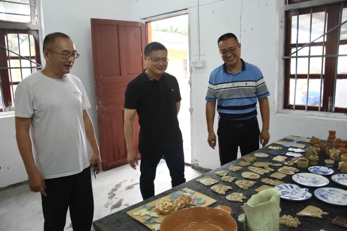 骆培华、李军在胡小明校长等行政的陪同下,参观了书法、水墨、陶艺等艺术社团的活动现场,胡小明向两位主席详细介绍了学校艺术社团的人员配备、训练情况等,并对学校的发展规划作了详细的介绍。骆培华对学校艺术社团的管理和多年来取得的艺术成果给予了充分的肯定,并对学校今后各项工作的开展提出四点建议:一是要在现有艺术成果的基础上总结经验,寻求更大突破。二是要继续加强艺术教育在人才培养中的作用。三是要加强师资队伍的建设,搭建教师发展平台。四是要按照学校的要求进一步规范部门管理,建章立制。最后,专家们与艺术科的教师进行了互动交流,重点交流了书法艺术的心得,分享了多年的创作历程,让东凤镇中心小学的艺术老师受益匪浅。