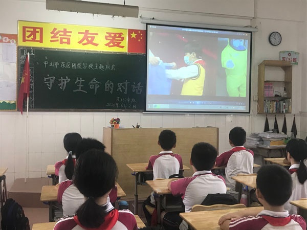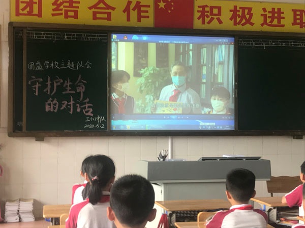 6月2日上午,团益学校组织学生观看“守护生命的对话”——少先队“云队课”活动视频,向最美逆行者致敬。
