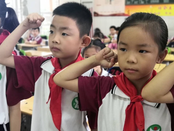 5月29日上午,东区团益学校以各个中队为单位举行了“喜迎少代会,争做好队员”为主题的第一批新队员入队仪式。