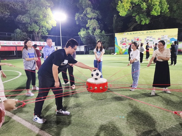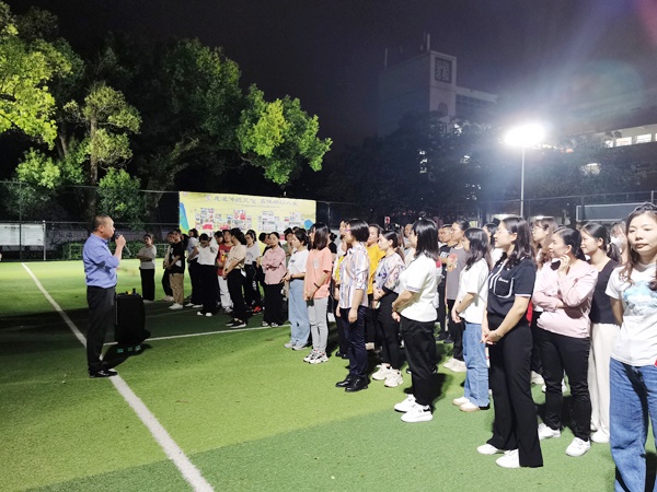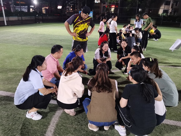 为增强全体教职工的凝聚力、战斗力,建设和谐、合作团队,创建文明校园,彰显工会组织在学校发展中的协调、促进作用,培养全体教职员工良好的归属感、幸福感,2022年11月16日晚上,团益学校组织全体教师在学校足球场开展团康活动。本次活动由学校工会委员会组织,由心理健康老师戴婉柔老师主持。