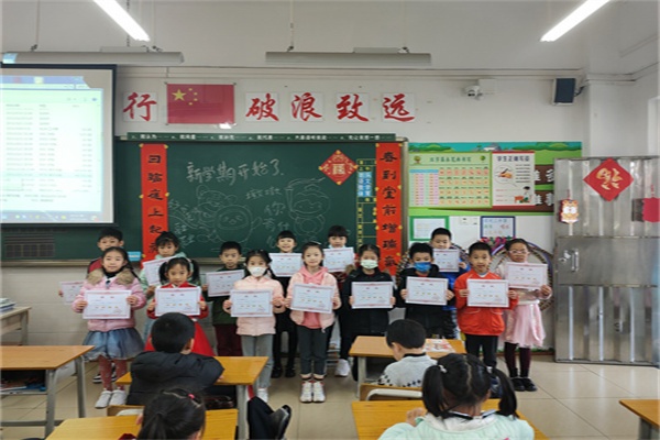“Together for a shared future,一起来,一起向未来……”主题班会课上,2022北京冬奥会歌曲《一起向未来》的音乐响起。全校师生边唱边做着动作。主题班会、心理第一课、交通安全教育课、表彰活动等如期开展,还有派红包,送吉物,抽奖品……远洋师生们在幸福和充实中迎来了新学期……