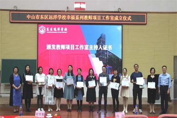 11月19日下午,远洋学校小学部在A1阶梯室举行工作室的成立仪式。到会的嘉宾有中山市教体局教研室小学语文教研员梁雪菊老师,东区远洋学校林华志副校长,东区远洋学校教导处行政以及东区远洋学校幸福工作室主持人及相关成员。