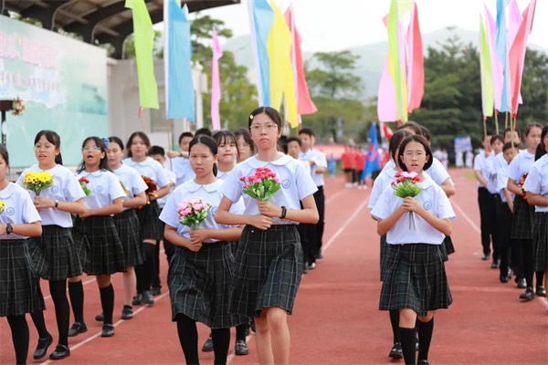 伴着雄壮有力的运动员进行曲,解说铿锵有力,气势磅礴。在国旗队的引领下,鲜花彩旗方阵、班级方阵、教师方阵依次走过主席台。他们步伐矫健,口号嘹亮,展示充满创意,充分展现了远洋学子不断进取、强国有我的精神风貌。