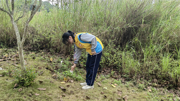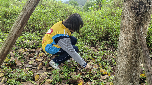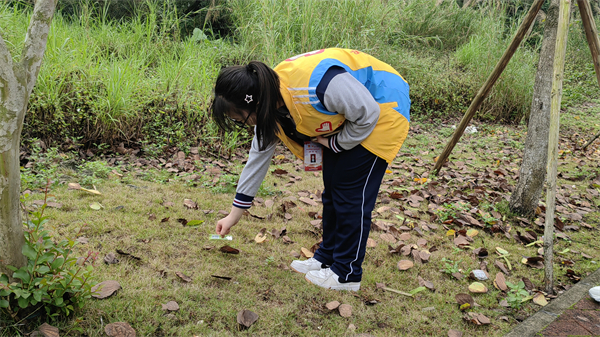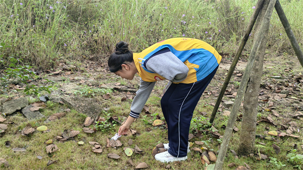 学员们认真检查草丛中,石缝里,将发现的矿泉水瓶、易拉罐、烟头、塑料袋分门别类地装到垃圾袋中,所到之处绝不遗落一处垃圾杂物,下山后准确无误地丢到山下的垃圾桶中。