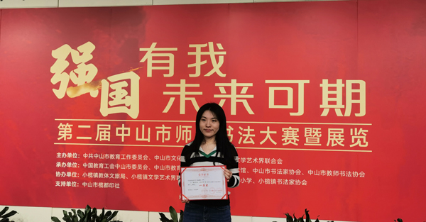 东区中学师生自接到比赛通知,积极准备,从作品内容、形式、书体等方面反复打磨,共提交8份作品,全部获奖。其中,杨丽媛老师获教师组一等奖,甘敏华老师获教师组二等奖;尹晨、刘伟欣同学获中学甲组一等奖,刘梦熙、邓希获中学甲组二等奖,林巧茵、郑梓岚获中学甲组三等奖。