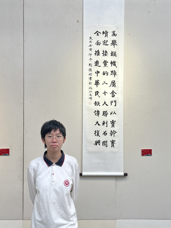 尹晨同学以题为《写好中国字,弘扬中国文化》作为本次参赛的学生代表发言,他讲述了中国文化博大精深;书法对于自己的意义;此次比赛作品选题的由来;作为新时代青少年要握住时代接力棒,继承和发扬中华优秀传统文化,成为优秀传统文化的传承与发扬者。
