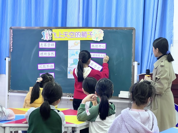 第一节课,莫家敏老师给星空体育带来绘本课例《飞上天空的狮子》。在课堂上,莫老师积极引导,激发学生的阅读兴趣,调动学生课堂的参与度和积极性。借助绘本向学生们讲授生活中要勇敢表达自己的想法,与家人、同伴、老师要理解与坦诚的道理。