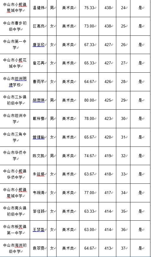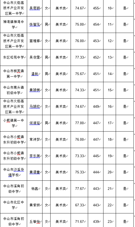 2022年中山市东升高级中学艺术生招生入围名单公示