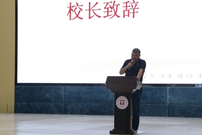 上午9点30分,典礼正式开始。经过庄严的升旗仪式后,学校党总支书记、校长周锦泉作了“奋斗致青春,一起向未来”的主题致辞。周校长从学校棒球队获得全国冠军引入,分别用“卧虎藏龙”“绝处逢生”“薪火相传”三个成语讲述了奥运健儿谷爱凌努力为国争光,中国女足绝地反杀和《长津湖之水门桥》抗美援朝英雄的故事,并以此激励高一同学要树立目标、不怕困难、不折不挠、坚持不懈、珍惜时光、努力奋斗。周校长一番振奋人心的讲话让在场师生深受鼓舞。