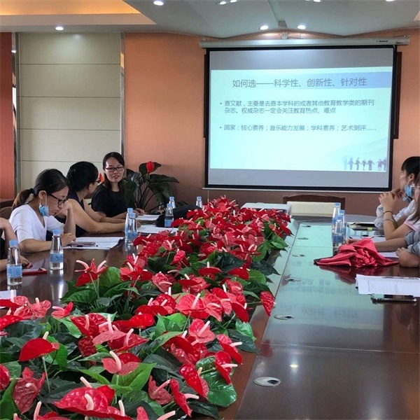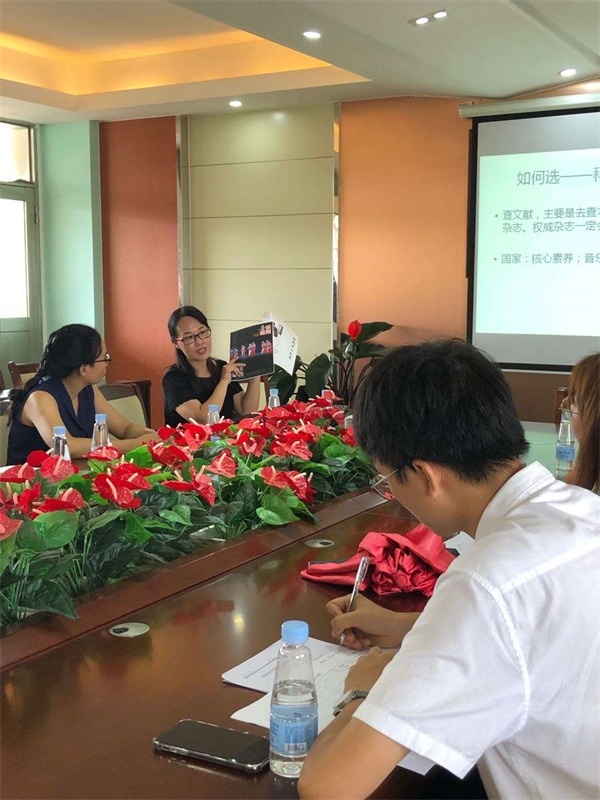 其次,结合课题组前期撰写的课题立项申请书、搜集的相关课题和论文资料情况,蒋校长认为本课题是在“音准训练”文献的基础上,对文献的内容进行分点分类概述,梳理出文献已经研究的内容,以及还欠缺哪些内容。她给教研组组成员做出了非常精彩的示范分析。