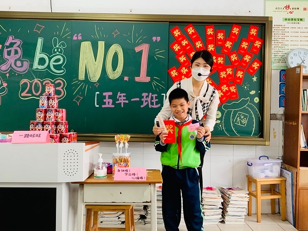 春风十里,不如校园有你。2月6日上午,怀着对新学期的美好期待,罗松小学学子开心步入阔别两个月的美丽校园。为更好迎接同学们归来,学校开展了以“感受传统文化,喜迎癸卯兔年”为主题的欢迎仪式,仪式设计兔年主题展台,展台两边是双兔拜年,中间放置充满粤式谐音祝福的果蔬礼品,寓意聪明、勤恳、平安等,寄托对同学们的深深祝福,同时安排六位舞狮少年,头顶狮子,分置走道两侧,醒狮开门,为同学们鼓舞斗志。学校还用心为每位同学准备了一份写满新春寄语的特殊红包,包含着罗松小学老师们的一份份殷切祝福和期望,激励同学们以昂扬斗志,满怀激情投入到新学期的学习中去。