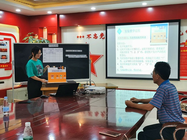 为促进实验教学创新,推动中小学课程改革,进一步发挥实验教学的育人功能,推进实验教学研究,提高理科实验教学水平,促进教师实验技能发展,阜沙中心小学重视科学老师专业发展,积极推动实验教学创新。根据《中山市教育和体育局关于开展2020年中山市中小学实验教学系列评选活动的通知》要求,积极准备,研究说课内容, 理解实验教学相关内容和要求,实验创新,找准创新点,从实验教学目标、实验方案设计、实验操作要领、实验数据处理、教学反思与自我评价等环节,打磨说课流程。在比赛中,董夏老师语言流畅,表述清晰,用自制的实验仪器演示,有具体的数据,分析归纳出声音高低与数据的关系,使实验可见、可算,培养学生跨科思维,符合STEM课程理念。自制实验仪器具有多处创新点,数字化、定时化、可变化。董夏老师《声音的高低》实验教学说课实至名归荣获科学组第一名,将参加中山市小学科学实验教学说课比赛。