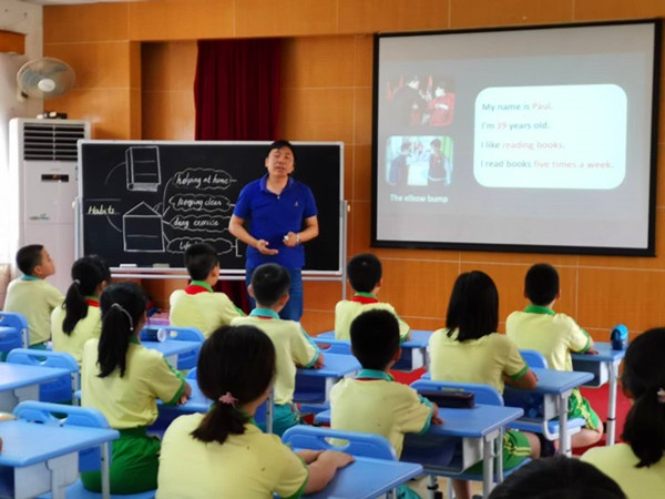 第一环节,由市骨干教师欧阳志华老师以其先进的教育教学理念、深厚的学科知识功底给大家展示了一节五年级的英语语篇教学。他通过“语篇引入-阅读指导-语篇复述-创编语篇”四个大环节,欧阳老师的英语语篇教学展现出较好的教学效果,深得市教研室张泰刚老师高度赞扬与听课老师的一致好评。