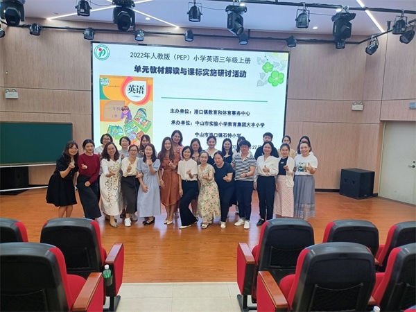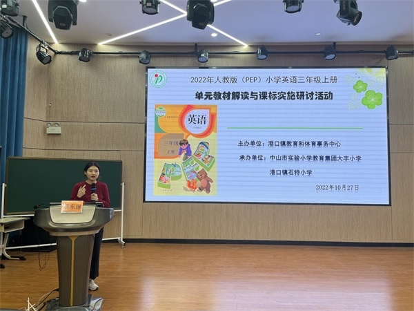 金秋十月,硕果飘香,为了深化小学英语课堂的教学改革,提高课堂教学质量,帮助老师们整体把握课程标准,落实学科核心素养,深度解读教材,助力教师专业化成长,10月27日下午,经中山市港口镇教育和体育事务中心主办、中山市实验小学教育集团大丰小学和港口镇石特小学承办的2022-2023学年度上学期小学英语三年级单元教材解读与课标实施研讨活动在大丰小学报告厅举行。参加此次研讨活动的有港口镇小学英语中心教硏组组长蔡东琳老师,大丰小学黄艳冰校长、陈宇环副书记、冯秀珍主任、英语导师梁艺娟老师和陈媛芳老师,港口镇各小学三年级英语教师及承办单位全体英语教师,本次活动由大丰小学英语科组长陈秋霞老师主持。