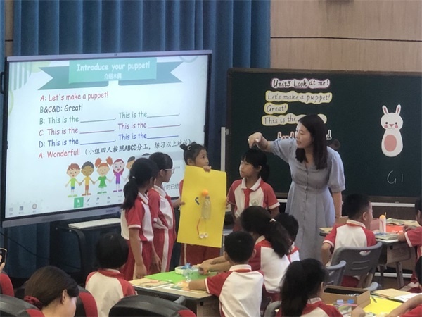 石特小学陈冰娜老师给大家呈现了一节词句课——B Let's talk,Let's learn & Let's do部分。陈老师创设了Sarah和Mike一起做木偶的情境,将新授知识进行有效构建,通过旧物制作木偶活动培养学生在实践中运用语言的能力、合作精神及环保意识。