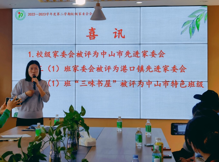 会议伊始,余主任向参会的各位家委表示热烈的欢迎,并向家委们报上佳音喜讯——上学期,在全体家委的共同努力下,中山市实验小学教育集团大丰小学校级家委会被评为中山市先进家委会;三(1)班家委会被评为港口镇先进家委会;三(1)班“三味书屋”被评为中山市特色班级。这些荣誉离不开师生的共同努力,更离不开各级家委们的大力支持。余主任希望家委们继续发挥家校携手共育的作用,助力学生健康成长,助力学校提质发展。